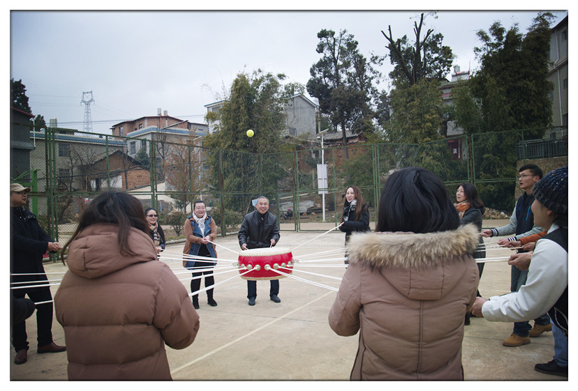 拓展訓(xùn)練在晨龍生態(tài)農(nóng)場基地進(jìn)行,活動當(dāng)天剛好遇到昆明降溫,還飄起了小雪,但是依然阻擋不了我們的腳步。參加人員被隨機(jī)分為兩隊(duì),通過集體討論,確定了各自的隊(duì)長。在訓(xùn)練過程中,兩支隊(duì)伍展開了激烈的競爭和活潑的互動活動,隊(duì)員們都顯示出良好的精神狀態(tài),團(tuán)隊(duì)相互配合、集體協(xié)作,相繼完成了車輪滾滾、擊鼓顛球和10人11足等拓展訓(xùn)練項(xiàng)目。