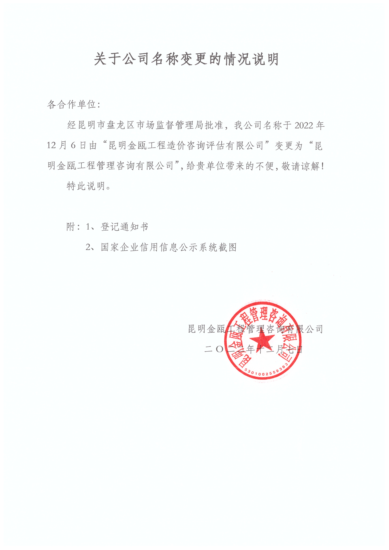 關(guān)于公司名稱變更的情況說明